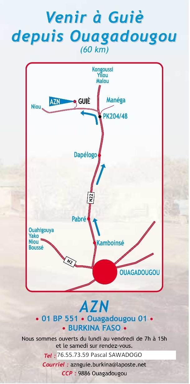 Adresse postale : 01 B.P. 551 Ouagadougou 01 / Burkina Faso